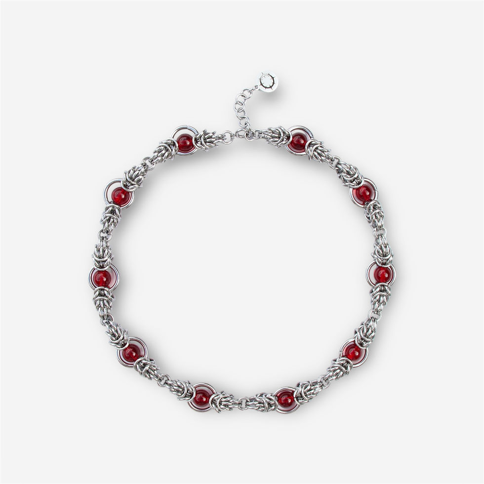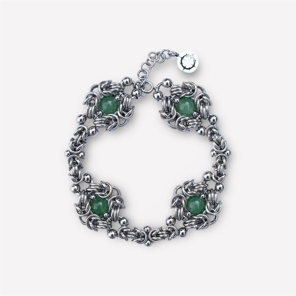 Handcrafted chainmail earrings with incorporated stainless steel charm and beads.